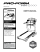 BEFORE YOU BEGIN Thank you for selecting the revolutionary PROFORM® PRO 2000 treadmill. The PRO 2000 treadmill offers an impressive selection of features designed to make your workouts at home more effective and enjoyable. And when you’re not exercising, the unique treadmill can be folded up, requiring less than half the floor space of other treadmills. ing this manual, please see the front cover of this manual.