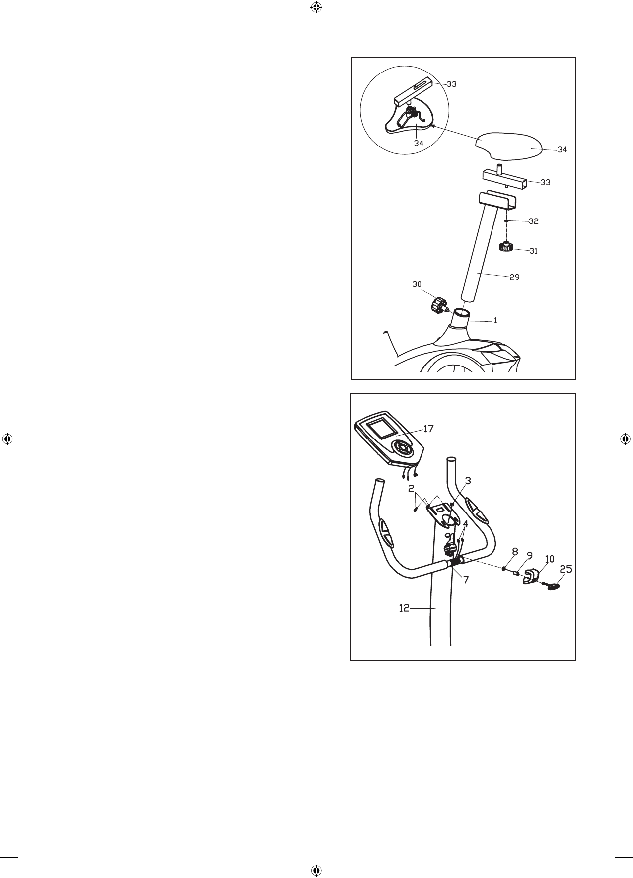 Bevestig het zadel (34) op de horizontale zadelbuis (33)