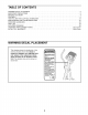 TABLE OF CONTENTS WARNING DECAL PLACEMENT .............................................................. IMPORTANT PRECAUTIONS ................................................................ BEFORE YOU BEGIN ...................................................................... ASSEMBLY ............................................................................... HOW TO USE THE ELLIPTICAL EXERCISER .................................................. MAINTENANCE AND TROUBLESHOOTING ........................