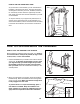 3. Identify the Right Handrail (7) (it may be helpful to look at the drawing on page 4). 3 11 Hold the Right Handrail (7) at an angle as shown and insert the upper end into the Right Upright (11). Keep the lower end of the Handrail away from the treadmill to avoid scratching the finish. Next, rotate the lower end of the Handrail to the position shown by the dotted line. 7 Make sure that the hole in the lower end of the Right Handrail (7) is aligned with the hole in the Extension Leg (34).