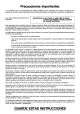 INSTRUCCIONES PARA LA PUESTA A TIERRA Este dispositivo tiene que ser puesto debidamente a tierra. Si se produce una avería o rotura, la conexión a tierra constituye el camino de menor resistencia para la corriente eléctrica, reduciéndose el riesgo de descargas peligrosas. El aparato cuenta con un cable con conductor de puesta a tierra y un enchufe con clavija de puesta a tierra.