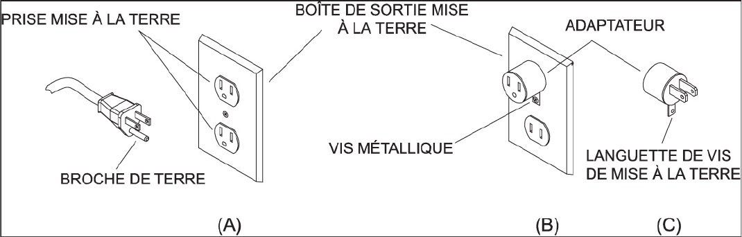 disponible. L’adaptateur temporaire devrait être utilise seulement jusqu'à ce qu’une prise avec mise à la terre soit