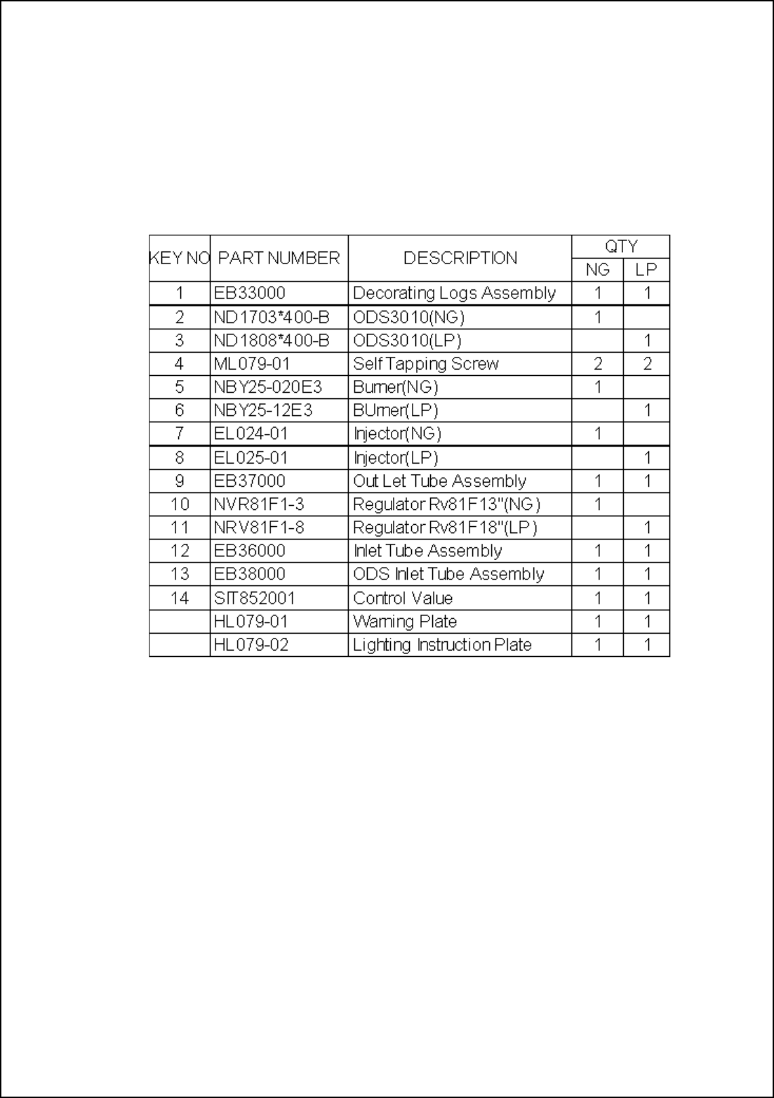 This list contains replaceable parts used in your heater. When ordering