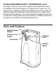 OTHER CONSUMER SAFETY INFORMATION (cont.) The length of the cord used on this appliance was selected to reduce the hazards of becoming tangled in, or tripping over a longer cord. If a longer cord is necessary an approved extension cord may be used. The electrical rating of the extension cord must be equal to or greater than the rating of the appliance.