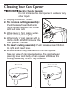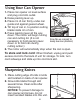 Using Your Can Opener 1. Place can opener on level surface and plug cord into outlet. 2. Raise piercing lever up. 3. Place rim of can firmly under can guide and against geared wheel. 4. Tilt top of can in, to position cutting blade inside rim of can. 5. Press piercing lever all the way down. The motor will begin turning can and cutting lid. (It is not (Use flip-up magnet to necessary to hold piercing lever easily see can position.) down or to hold can during cutting action.) 6.