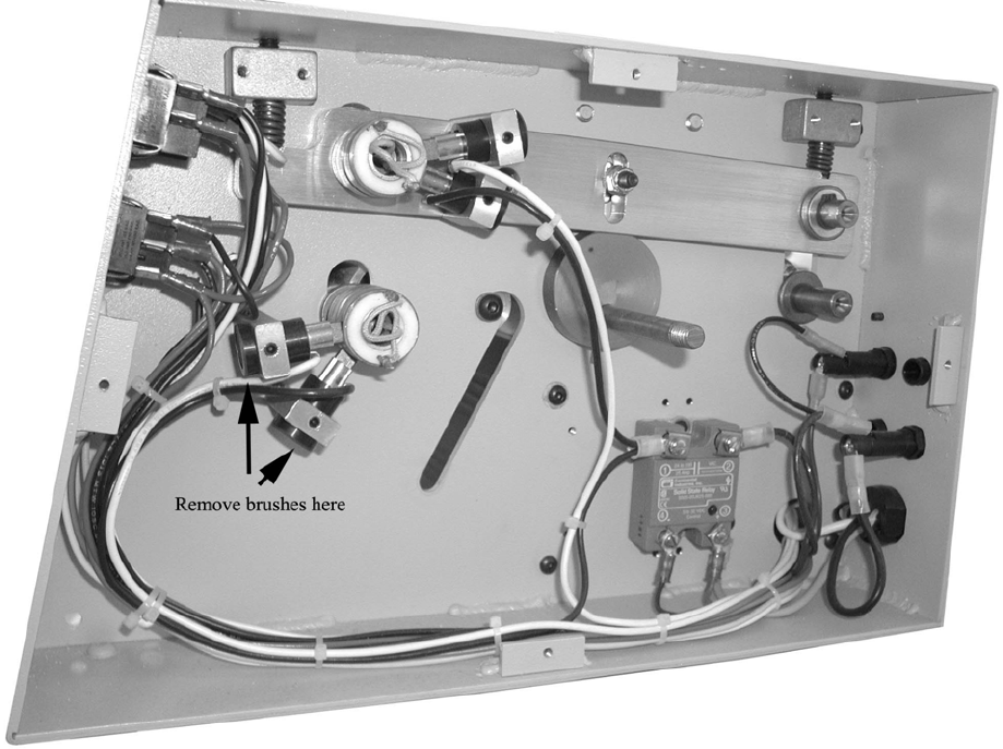 contained in two brush holders. These brushes must be removed. On the backside of the brush