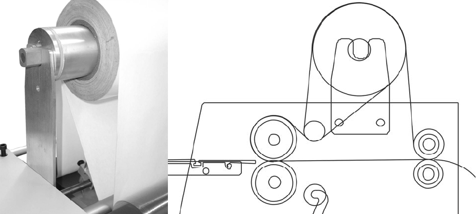 before the back rollers. At this point either, gap the rollers and manually thread the release liner through
