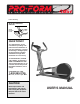 IMPORTANT PRECAUTIONS WARNING: To reduce the risk of serious injury, read the following important precautions before using the PROFORM¨ 485E. 8. Wear appropriate clothing when using the 485E. Always wear athletic shoes for foot protection. 1. Read all instructions in this manual before using the 485E. 2. Use the 485E only as described in this manual. 9. When mounting and dismounting the 485E, always hold the handlebars or the T-handle and step onto and off the pedal that is in the lowest position. 3.