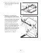 6. Hold the Left Upright (84) against the Base (95). Insert two 3/8" x 4" Bolts (7) with two 3/8" Star Washers (11) and a 3/8" x 1 1/2" Bolt (14) with a 3/8" Star Washer (11) into the Left Upright. 6 14 7 Partially tighten the 3/8" x 4" Bolts (7) until the heads of the Bolts touch the Left Upright (84); do not fully tighten the Bolts yet. Partially tighten the 3/8" x 1 1/2" Bolt (14). 11 11 With the help of a second person, tip the treadmill so that the Base (95) is flat on the floor. 84 95 7.