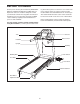 24. Inspect and properly tighten all parts of the treadmill regularly. 20. Never leave the treadmill unattended while it is running. Always remove the key, unplug the power cord, and press the power switch into the off position when the treadmill is not in use. (See the drawing on page 5 for the location of the power switch.) 25. 21. Do not attempt to raise, lower, or move the treadmill until it is properly assembled. (See ASSEMBLY on page 6, and HOW TO FOLD AND MOVE THE TREADMILL on page 21.