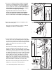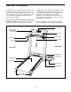 HOW TO LOWER THE TREADMILL FOR USE 1 1. Hold the upper end of the treadmill with your right hand as shown. Using your left hand, pull the latch knob to the left and hold it. Pivot the treadmill down until the frame is past the pin. Slowly release the latch knob. Latch Knob Pin Foot Rail 2. Hold the treadmill firmly with both hands, and lower the treadmill to the floor. Do not drop the treadmill frame to the floor.