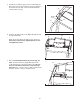 HOW TO LOWER THE TREADMILL FOR USE 1. Hold the upper end of the treadmill with your right hand. Press the storage latch to the left. Pivot the treadmill down until the frame and foot rail are past the storage latch. Storage Latch Catch 2. Hold the treadmill firmly with both hands, and lower the treadmill to the floor. Do not drop the treadmill frame to the floor. To decrease the possibility of injury, bend your legs and keep your back straight.
