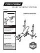 BEFORE YOU BEGIN Thank you for selecting the PROFORM® SPORT OLYMPIC SYSTEM weight bench. The versatile weight bench is designed to develop every major muscle group of the body. Whether your goal is to have a shapely figure, dramatic muscle size and strength, or a healthier cardiovascular system, the weight bench will help you to achieve the specific results you want. reading this manual, please see the front cover of this manual.
