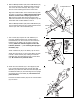 9. Connect the Extension Wire (51) to the corresponding wire on the Console (87). 9 49 Next, connect the two Pulse Wires (86) to the two remaining wires on the Console (87). Note: Either Pulse Wire can be attached to either wire on the Console. Ground Wire 87 35 86 Next, connect the ground wire to the indicated hole in the Console Plate (91) with an M4 x 16mm Screw (35). Console Wires 35 91 51 Carefully feed the wires down into the Upright (2).