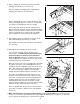 Locate the Reed Switch (18) and the Magnet (101) on the left side of the Pulley (78). Turn the Pulley until the Magnet is aligned with the Reed Switch. Make sure that the gap between the Magnet and the Reed Switch is about 1/8”. If necessary, loosen the Screw (24) and move the Reed Switch slightly. Retighten the Screw. Re-attach the hood, and run the treadmill for a few minutes to check for a correct speed reading. 1/8” 24 78 18 101 Top View PROBLEM: The walking belt slows when walked on SOLUTION: a.