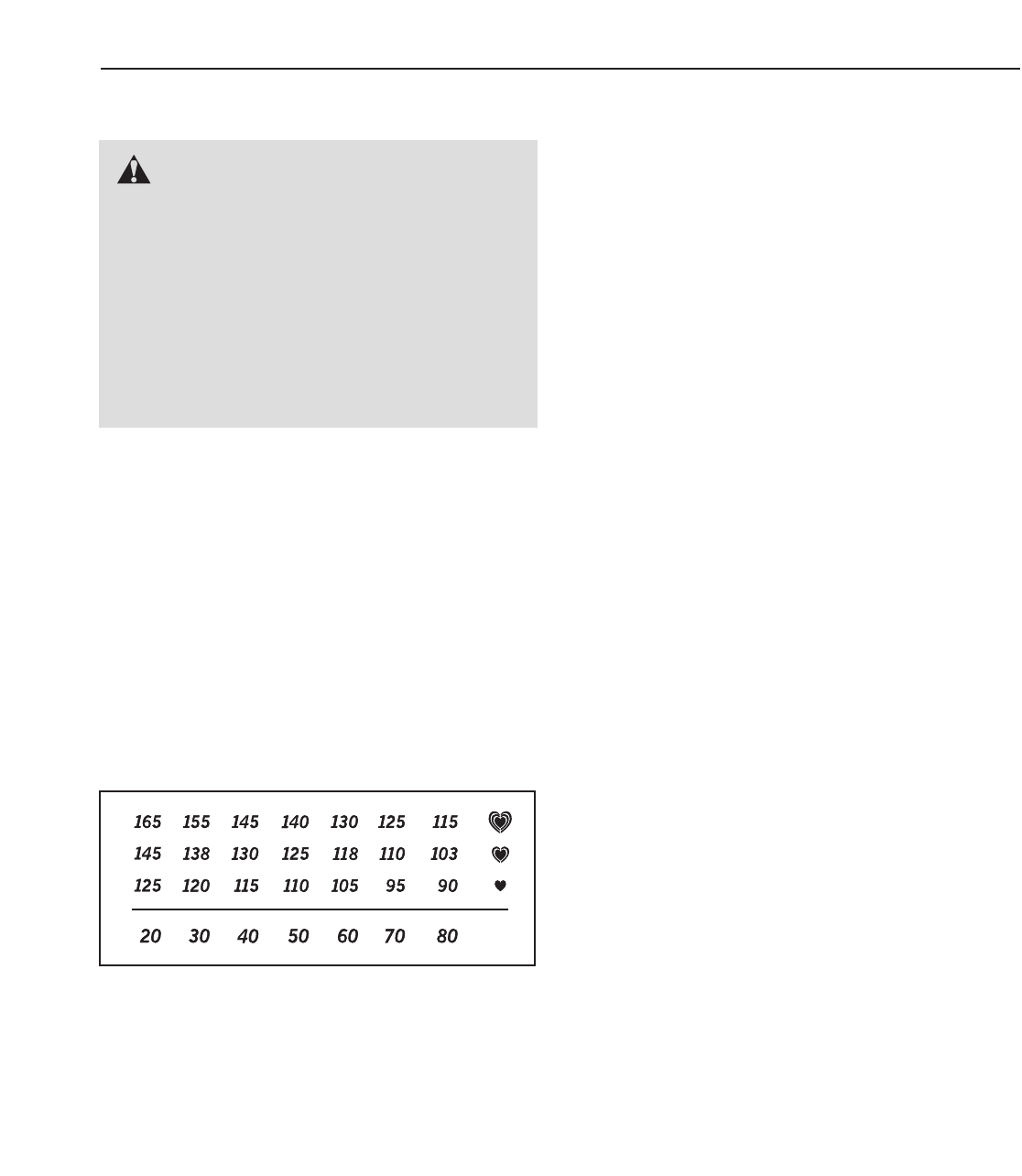 The chart below shows recommended heart rates for