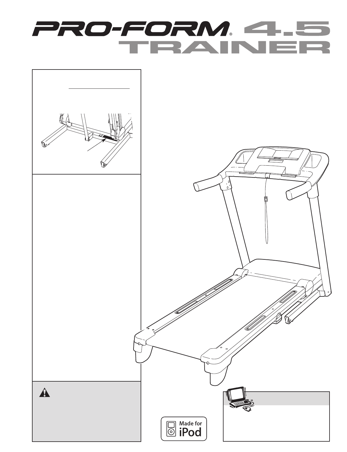 BEFORE YOU BEGIN Thank you for selecting the revolutionary PROFORM® 4.5 TRAINER treadmill with Universal Dock for iPod. The 4.5 TRAINER treadmill with Universal Dock for iPod offers an impressive array of features designed to make your workouts at home more enjoyable and effective. And when you’re not exercising, the unique 4.5 TRAINER treadmill with Universal Dock for iPod can be folded up, requiring less than half the floor space of other treadmills.