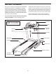HOW TO TURN ON THE POWER HOW TO USE THE MANUAL MODE IMPORTANT: If the treadmill has been exposed to cold temperatures, allow it to warm to room temperature before turning on the power. If you do not do this, you may damage the console displays or other electrical components. 1. Insert the key into the console. Plug in the power cord (see page 15). Next, locate the power switch on the treadmill frame near the power cord. Press the power switch into the reset position.