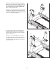 15. Attach the Left Tray (107) and the Right Tray (108) to the console assembly with four #8 x 1/2" Screws (1). 15 108 107 1 1 16. IMPORTANT: See page 15 and plug in the power cord. Next, see page 17 and turn on the power. 16 Then, press the Incline increase button once. When the frame stops moving, remove the key from the console and unplug the power cord.