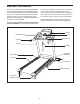 24. Inspect and properly tighten all parts of the treadmill regularly. 20. Never leave the treadmill unattended while it is running. Always remove the key, unplug the power cord, and switch the reset/off circuit breaker to the off position when the treadmill is not in use. (See the drawing on page 5 for the location of the circuit breaker.) 25. 21. Do not attempt to raise, lower, or move the treadmill until it is properly assembled.