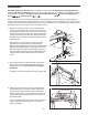 HOW TO LOWER THE TREADMILL FOR USE 1. Hold the upper end of the treadmill with your right hand as shown. Using your left hand, pull the storage latch to the left and hold it. Pivot the treadmill down until the frame is past the pin on the storage latch. Storage Latch 2. Hold the treadmill firmly with both hands, and lower the treadmill to the floor. CAUTION: To decrease the possibility of injury, bend your legs and keep your back straight. Do not drop the treadmill.