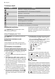 progress Tehotasojen näytöt Näyttö Kuvaus Keittoalue on kytketty pois toiminnasta. Lämpimänäpito/STOP + GO-toiminto on käytössä. - Keittoalue on toiminnassa. Keittoastia on sopimaton tai liian pieni, tai keittoalueella ei ole astiaa. Toimintahäiriö. Keittoalue on vielä kuuma (jälkilämpö). Lukitus/lapsilukko on toiminnassa. Power-toiminto on toiminnassa. Automaattinen virrankatkaisu on toiminnassa.