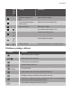Progress 7 4 5 6 Sen‐ sora lauk s Funkcija Komentāri - Sildīšanas pakāpes dis‐ plejs Rāda sildīšanas pakāpi. - Taimera indikatori gatavo‐ šanas zonām Rāda, kurai zonai iestatīts laiks. - Taimera displejs Rāda laiku minūtēs. - Lai izvēlētos gatavošanas zonu. / - Paildzina vai saīsina laiku. / - Iestata sildīšanas pakāpi. Jaudas funkcija Funkcijas aktivizēšanai un deaktivizēšanai. 7 8 9 10 Sildīšanas pakāpju rādījumi Displejs Apraksts Gatavošanas zona ir izslēgta.
