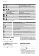 progress Gra u de cozedura Utilize para: Tempo Sugestões Consumo de potência nominal Manter quentes os alimentos cozinhados conforme necessário Coloque uma tampa no tacho 3% 1-2 Molho holandês, derreter: manteiga, chocolate, gelatina 5 - 25 min Misture regularmente 3–5% 1-2 Solidificar: omeletas fofas, ovos cozidos 10 - 40 min Coza com uma tampa 3–5% 2-3 Cozer arroz e pratos à base de leite em lume brando, aquecer refeições pré-cozinhadas 25 - 50 min Adicione, no mínimo, duas vezes