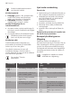Progress Problem Möjlig orsak Lösning Säkringen har utlösts. Kontrollera om säkringen är orsaken till felet. Om säkringen går gång på gång, tala med en behörig elektriker. Sätt på hällen igen och ställ in värmeläget inom 10 sekunder. Du har tryckt på 2 eller flera touchkontroller samtidigt. Tryck bara på en touch-kontroll. STOP+GO-funktionen är igång. Se avsnittet "Daglig användning". Det finns vatten eller fettstänk på kontrollpanelen. Rengör kontrollpanelen.
