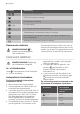 Progress Display Beschrijving De kookzone wordt gebruikt. - STOP+GO-functie is in werking. Powerfunctie is in werking. + cijfer Er is een storing. Er is nog een kookzone heet (restwarmte). Toetsblokkering / Het kinderslot functie is in werking. Het kookgerei is niet geschikt of te klein, of er is geen kookgerei op de kookzone geplaatst. Automatisch uitschakelen-functie is in werking. Restwarmte-indicatie WAARSCHUWING! Er bestaat verbrandingsgevaar door restwarmte.