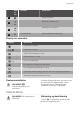 Progress Problem Möjlig orsak Lösning Touch-kontrollerna blir varma. Kokkärlet är för stort eller står för nära kontrollerna. Placera stora kokkärl på de bakre zonerna om möjligt. Det hörs inget ljud när du trycker på touch-kontrollerna. Ljudsignalerna är avaktiverade. Aktivera signalerna. Se avsnittet "Daglig användning". tänds. Den automatiska avstängningen har aktiverats. Stäng av hällen och sätt på den igen. tänds. Funktionslåset/Barnlåset är aktiverat.