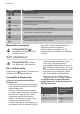 Progress Kijelző Megnevezés A főzőzóna működik. - A STOP+GO funkció működik. A Rásegítés funkció funkció működik. + számjegy Üzemzavar lépett fel. Egy főzőzóna még mindig forró (maradékhő). A Funkciózár /Gyerekzár funkció működik. Nem megfelelő vagy túl kicsi a főzőedény, vagy nincs főzőedény a főző‐ zónán. A Automatikus kikapcsolás funkció működik. Maradékhő visszajelző FIGYELMEZTETÉS! A maradékhő miatt égési sérülés veszélye áll fenn.