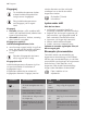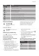 Progress 13 Problem tændes. og et tal lyser. Mulige årsager Afhjælpning Der står ikke kogegrej på kogezonen. Sæt kogegrej på kogezonen. Der er brugt uegnet kogegrej. Brug egnet kogegrej. Se kapitlet "Nyttige oplysninger og råd". Diameteren på kogegrejets bund er for lille til kogezonen. Brug kogegrej med de rette mål. Se kapitlet “Teknisk information”. Der er en fejl i kogesektionen. Kobl kogesektionen fra lysnettet i et stykke tid. Sluk på gruppeafbryderen, eller tag sikringen ud på tavlen.
