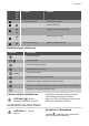 Progress 7 6 Juti‐ klio lau‐ kas Funkcija Pastaba - Laikmačio ekranas Rodo laiką minutėmis. - Parenka kaitvietę. / - Pailgina arba sutrumpina laiką. / - Nustato kaitinimo lygį. Galingumo funkcija Įjungia ir išjungia funkciją. 7 8 9 10 Kaitinimo lygių rodmenys Ekranas Aprašymas Kaitvietė išjungta. Kaitvietė veikia. - STOP+GO funkcija veikia. Veikia Galingumo funkcija. + skaitmuo Įvyko veikimo triktis. Kaitvietė vis dar karšta (likęs karštis).