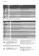Progress 6 Pole czuj‐ nika Funkcja Uwagi - Wyświetlacz zegara Pokazuje czas w minutach. - Wybór pola grzejnego. - Przedłużanie lub skracanie czasu. Funkcja Power Włączanie i wyłączanie funkcji. Pasek regulacji Ustawianie mocy grzania. 7 / 8 9 10 - Wskazania ustawień mocy grzania Wskazanie Opis Pole grzejne jest wyłączone. Pole grzejne jest włączone. - Włączona jest funkcja STOP+GO. Włączona jest funkcja Funkcja Power. + cyfra Nieprawidłowe działanie.