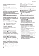 Progress 13 Težava Možen vzrok Rešitev Stopnja kuhanja se med dvema stopnjama spreminja. Deluje funkcija Upravljanje moči. Oglejte si poglavje »Vsakod‐ nevna uporaba«. Senzorska polja so vroča. Posoda je prevelika oz. ste jo postavili preblizu uprav‐ ljalnih polj. Večjo posodo postavite na zadnje kuhališče, če je mož‐ no. Ob dotiku senzorskih polj na plošči ni zvoka. Zvočni signali so izklopljeni. Vklopite zvočne signale. Oglejte si poglavje »Vsakod‐ nevna uporaba«. zasveti.