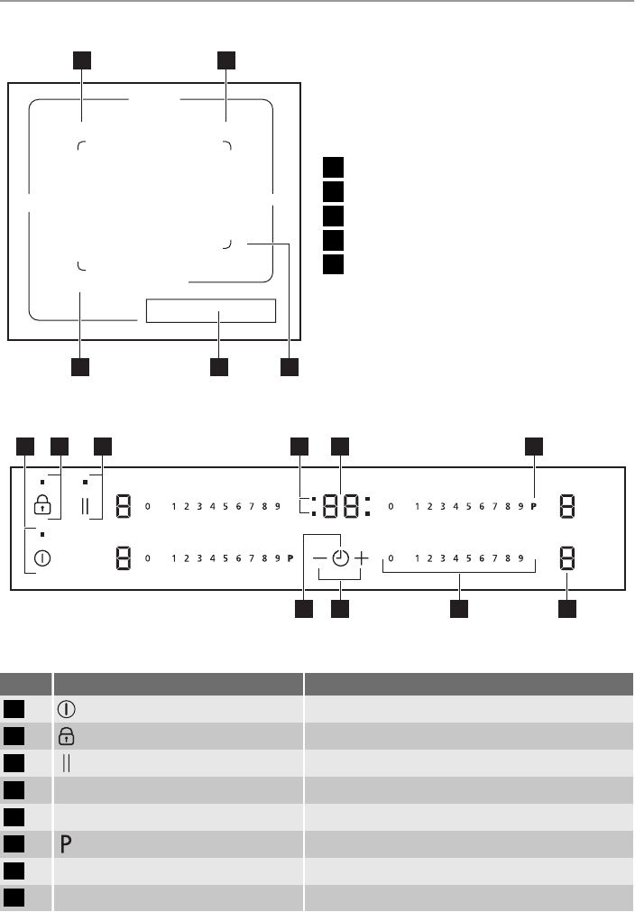 Timer indicators of cooking zones To show for which cooking zone you set the time.