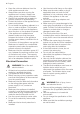 Progress Activating and deactivating Touch for 1 second to activate or deactivate the hob. Automatic Switch Off The function deactivates the hob automatically if: • all cooking zones are deactivated, • you do not set the heat setting after you activate the hob, • you spill something or put something on the control panel for more than 10 seconds (a pan, a cloth, etc.). An acoustic signal sounds and the hob deactivates. Remove the object or clean the control panel. • the hob gets too hot (e.g.