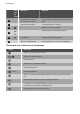 Progress Kezelőpanel elrendezés 1 2 3 5 6 4 11 7 10 9 8 A készülék üzemeltetéséhez használja az érzékelőmezőket. Kijelzések, visszajelzők és hangok jelzik, hogy mely funkciók működnek. Ér‐ zéke‐ lőme‐ ző Funkció Megjegyzés 1 BE / KI A főzőlap be- és kikapcsolása. 2 Funkciózár / Gyermekzár A kezelőpanel lezárása/a lezárás feloldása. 3 Szünet A funkció be- és kikapcsolása. 4 Bridge A funkció be- és kikapcsolása. - Hőfokbeállítás kijelzése Jelzi a hőfokbeállítást.