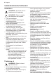 Progress 19 Generelt om sikkerhet • • • • • • • • • • • • ADVARSEL: Produktet og tilgjengelige deler blir varme under bruk. Pass på at du ikke berører varmeelementene. Produktet er ikke beregnet for å brukes sammen med et separat fjernkontrollsystem eller et eksternt tidsur. ADVARSEL: Matlaging uten tilsyn på en koketopp med fett eller olje kan være farlig og kan resultere i brann. DU MÅ ALDRI prøve å slukke en brann med vann, men du må slå av produktet og deretter dekke flamme f.eks.