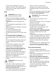 Progress Problem Possible cause Remedy The sensor fields become hot. The cookware is too large or you put it too near to the controls. Put large cookware on the rear zones if possible. comes on. Child Safety Device or Lock operates. Refer to "Daily use". comes on. There is no cookware on the zone. Put cookware on the zone. The cookware is unsuitable. Use suitable cookware. Re‐ fer to "Hints and tips". The diameter of the bottom of the cookware is too small for the zone.