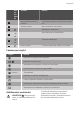 Progress 7 4 5 Kosketuspainike Toiminto Kuvaus - Keittoalueiden ajastimen ilmaisimet Aika-asetusta koskevan keittoalueen osoittaminen. - Ajastimen näyttö Ajan osoittaminen minuutteina. - Keittoalueen valitseminen. / - Ajan lisääminen tai vähentäminen. / - Tehotason säätäminen. Power-toiminto Toiminnon kytkeminen päälle ja pois päältä. 6 7 8 9 Tehotasojen näytöt Näyttö Kuvaus Keittoalue on kytketty pois toiminnasta. Keittoalue on toiminnassa.