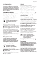 Progress Jelenség Lehetséges ok Javítási mód A legmagasabb hőfok van beállítva. A legmagasabb főzési foko‐ zatnak ugyanakkora a telje‐ sítménye, mint a funkciónak. A hőfok két szint között vál‐ tozik. A Teljesítménykezelés funk‐ ció működik. Olvassa el a „Napi haszná‐ lat” című fejezetet. Az érzékelőmező felmelegs‐ zik. A főzőedény túl nagy vagy túl közel tette a kezelőpanel‐ hez. Ha lehetséges, tegye a nagy főzőedényeket a hátsó főző‐ zónákra. A visszajelző világítani kezd.