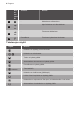 Progress 15 Ongelma Mahdollinen syy Korjaustoimenpide Korkein tehotaso on asetet‐ tu. Korkeimman tehotason arvo on sama kuin toiminnon. Tehotaso muuttuu kahden asetuksen välillä. Tehonhallinta on kytketty päälle. Katso kohta "Päivittäinen käyttö". Kosketuspainikkeet kuume‐ nevat. Keittoastia on liian suuri, tai se on liian lähellä painikkei‐ ta. Laita isokokoiset keittoastiat taka-alueille, jos mahdollis‐ ta. syttyy. Uunin lapsilukko tai Lukitus on kytketty päälle.