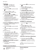 Progress Funkcijos „TRUKMĖ“ nustatymas 1. Pasirinkite orkaitės funkciją ir temperatūrą. 2. Spaudinėkite , kol pradės mirksėti . 3. Spauskite arba , kad nustatytumėte TRUKMĖS laiką. Ekrane rodoma . 4. Laikui pasibaigus, mirksi ir pasigirsta garso signalas. Prietaisas automatiškai išsijungia. 5. Norėdami išjungti garso signalą, paspauskite bet kurį mygtuką. 6. Pasukite orkaitės funkcijų rankenėlę ir temperatūros nustatymo rankenėlę į išjungimo padėtį. Funkcijos PABAIGA nustatymas 1.