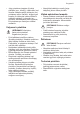 Progress 23 Vaisiai Patiekalas Temperatūra (°C) Laikas (val.) Slyvos 60–70 Abrikosai Pjaustyti obuo‐ liai Kriaušės Lentynos padėtis 1 padėtis 2 padėtys 8–10 3 1/4 60–70 8–10 3 1/4 60–70 6–8 3 1/4 60–70 6–9 3 1/4 VALYMAS IR PRIEŽIŪRA ĮSPĖJIMAS! Žr. saugos skyrius. Pastabos dėl valymo • Prietaiso priekį valykite minkšta šluoste ir šiltu vandeniu su valymo priemone. • Metaliniams paviršiams valyti naudokite tam skirtą valymo priemonę. • Prietaiso vidų valykite po kiekvieno naudojimo.