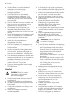 Progress Livsmedel Temperatur (°C) Tid (t) Äppelskivor 60 - 70 Päron 60 - 70 Falsnivå 1 position 2 positioner 6-8 3 1/4 6-9 3 1/4 SKÖTSEL OCH RENGÖRING VARNING! Se säkerhetsavsnitten. Anmärkningar om rengöring • Torka av framsidan med en mjuk trasa och varmt vatten och diskmedel. • Använd ett rengöringsmedel avsett för rengöring av metallytor. • Rengör produkten efter varje användningstillfälle. Fettansamling eller andra matrester kan leda till eldsvåda. Risken är högre för grillpannan.