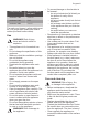 Progress 11 3. Turn the control knob to set temperature. 4. Preheat the empty oven for 10 minutes to create humidity. 5. Put food in the oven. Refer to "Hints and tips" chapter. Do not open the oven door during cooking. 6. Turn the knob for the heating functions to the off position to turn off the oven. 7. Remove water from the cavity embossment. WARNING! Make sure that the oven is cold before you remove the remaining water from the cavity embossment.