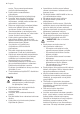 Progress 17 Käyttöhäiriöt Ongelma Mahdollinen syy Korjaustoimenpide Uuni ei kuumene. Uuni on kytketty pois toiminnasta. Kytke uuni toimintaan. Uuni ei kuumene. Sulake on palanut. Tarkista, onko toimintahäiriön syynä sulake. Jos sulake palaa aina uudelleen, käänny sähköalan ammattilaisen puoleen. Valo ei syty. Lamppu on palanut. Vaihda lamppu. Höyryä ja kosteutta muodostuu ruokaan ja uunin sisälle. Ruoka on jätetty uuniin liian pitkäksi ajaksi.