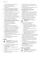 Progress 5 • Kytke laite pois toiminnasta ja irrota pistoke pistorasiasta ennen ylläpitotoimien aloittamista. • Tarkista, että laite on kylmä. Vaarana on lasilevyjen rikkoutuminen. • Vaihda välittömästi vaurioituneet luukun lasipaneelit. Ota yhteys valtuutettuun huoltoliikkeeseen. • Ole varovainen irrottaessasi laitteen luukkua. Luukku on painava! • Puhdista laite säännöllisesti, jotta pintamateriaali ei vaurioidu. • Laitteeseen jäänyt rasva tai ruoka voi aiheuttaa tulipalon.